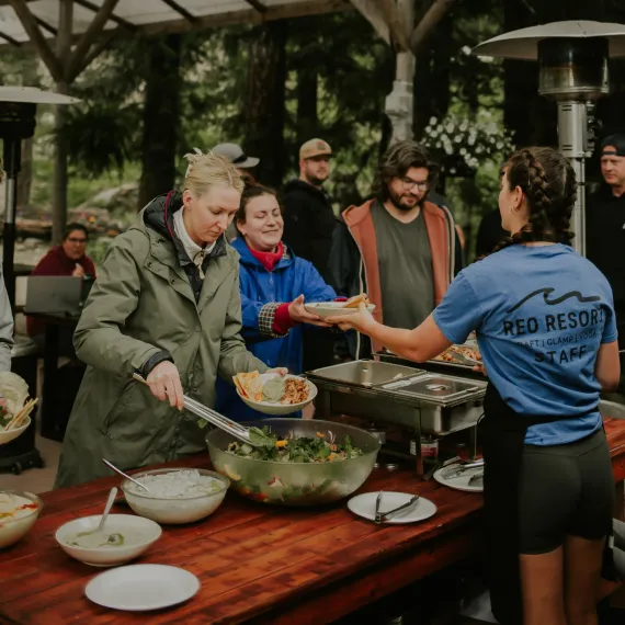 At the same time, you’ll enjoy unique adventure and wellness perks that make the REO experience special, including yoga sessions, guided hikes, and weekly river or lake activities.