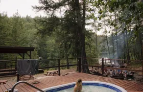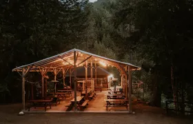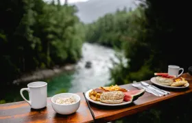 Constructed from hand-peeled logs and canvas our unique Glamping tents are perched on the edge of the Nahatlatch River. Each one is styled by local decorators who bring their own flair and charm to our cozy lodging. Enjoy the stunning view of the river from your private deck while relaxing in comfy outdoor furniture and sharing a refreshing beverage with a friend.