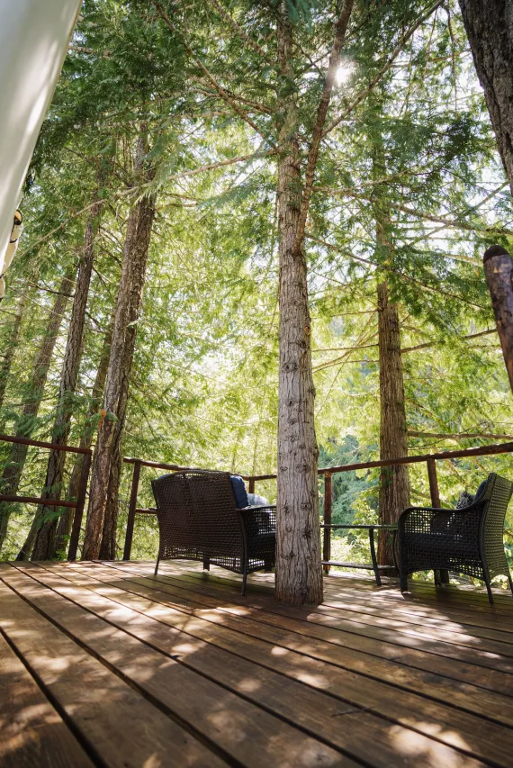 Constructed from hand-peeled logs and canvas our unique Glamping tents are perched on the edge of the Nahatlatch River. Each one is styled by local decorators who bring their own flair and charm to our cozy lodging. Enjoy the stunning view of the river from your private deck while relaxing in comfy outdoor furniture and sharing a refreshing beverage with a friend.Queen, Double, & Twin Bed Units