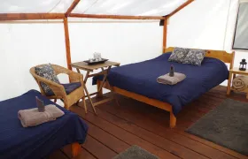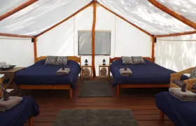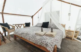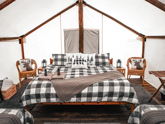 These glamping units are perfect for everyone! Whether you're travelling with your family, friends, coworkers, schoomates, or attending a wellness retreat - you'll find great comfort in our beautiful river's edge accommodations. We have a range of different bed configurations within our tents so that we can offer our guests the unit that is most comfortable for them.