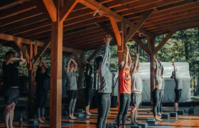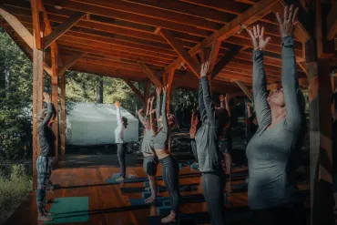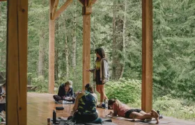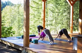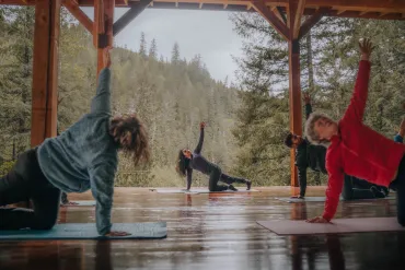 ![]() | Exclusive River's Edge Yoga Centre Our yoga shala overlooks the beautiful Nahatlatch River with a rooftop shala for outdoor sessions. Accommodates up to 35 people per class. |